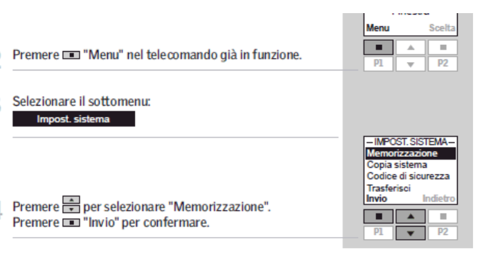 Seleziona sul telecomando con display KLR 100 : "Menu - Impostazione di sistema - Memorizzazione" e dai Invio per confermare.