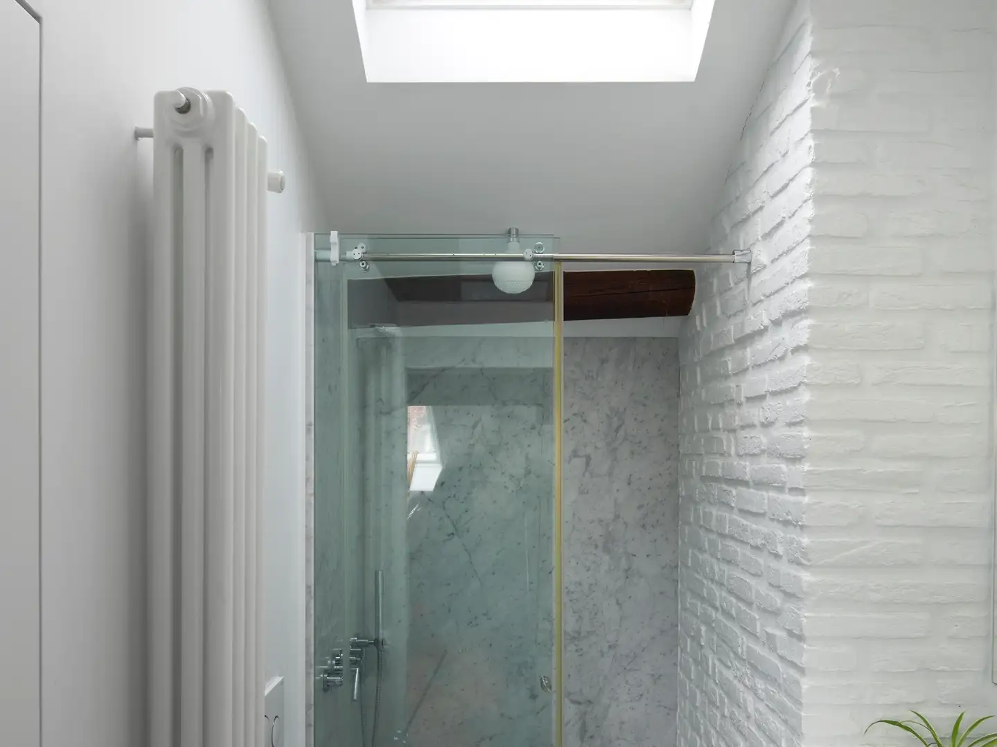 1. Finestre verticali: la soluzione classica. Non preoccuparti della privacy: vetri satinati o tende resistenti all’umidità risolvono il problema