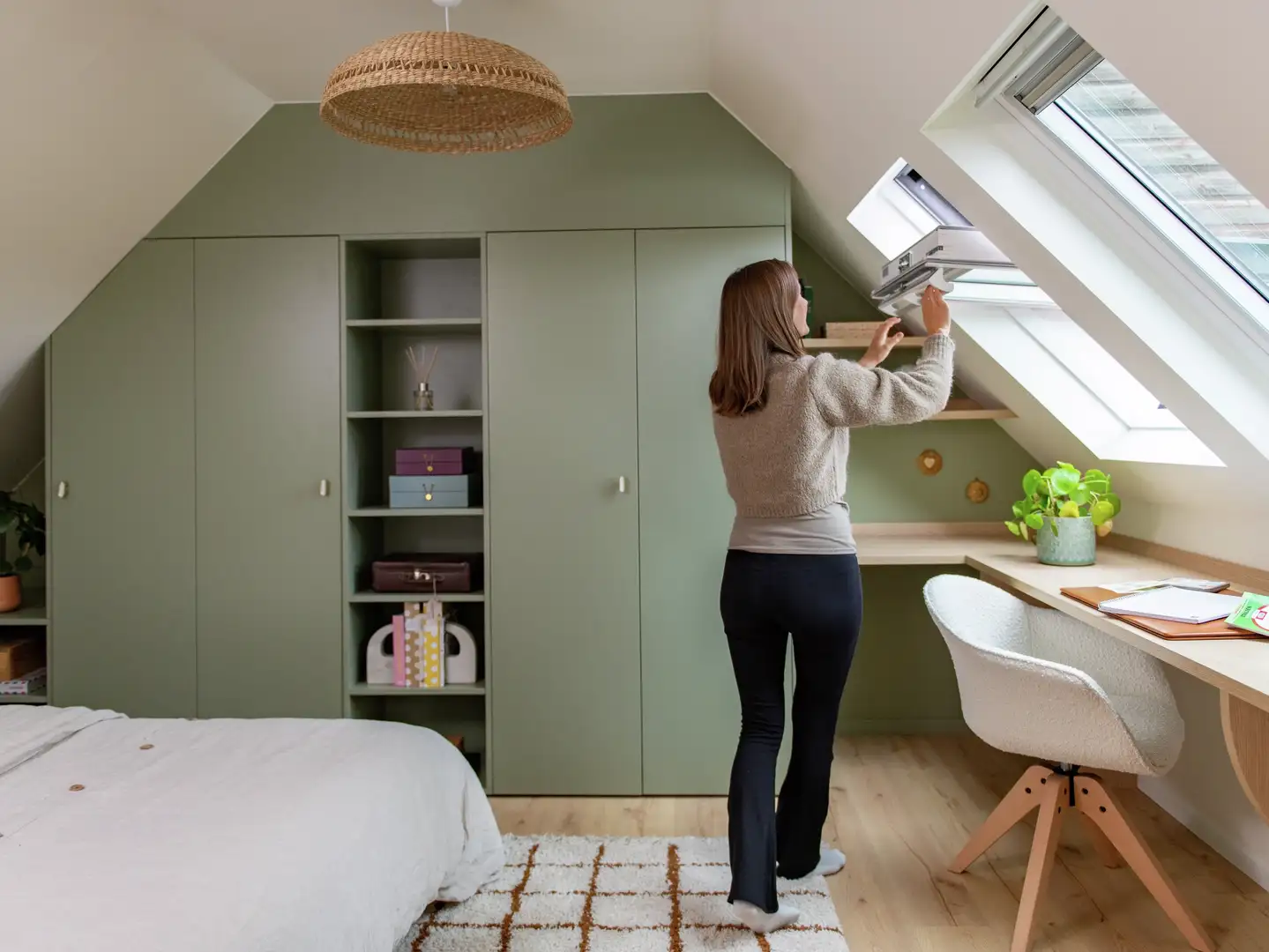 Per gestire al meglio la ventilazione, le finestre per tetti elettriche e solari sono una soluzione efficace: con un sistema smart come VELUX ACTIVE, possono aprirsi automaticamente in base ai valori di umidità e qualità dell’aria, assicurando un ricambio costante anche quando non sei in casa, o durante la notte.