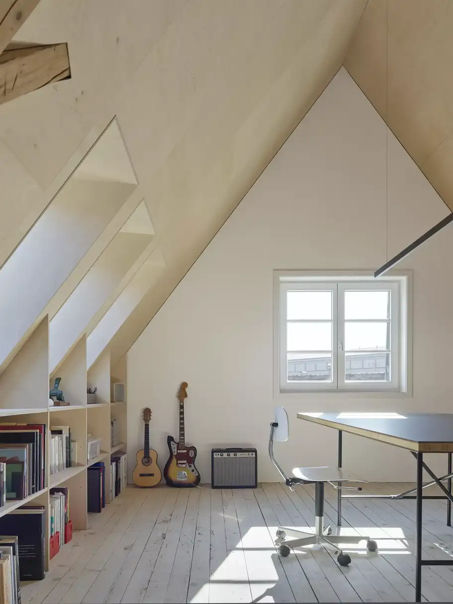 Le stanze in mansarda ricevono spesso meno luce naturale. Succede a causa del tetto spiovente e perché le pareti verticali sono molto basse o assenti, e di conseguenza lo è anche lo spazio per inserire grandi finestre in facciata.