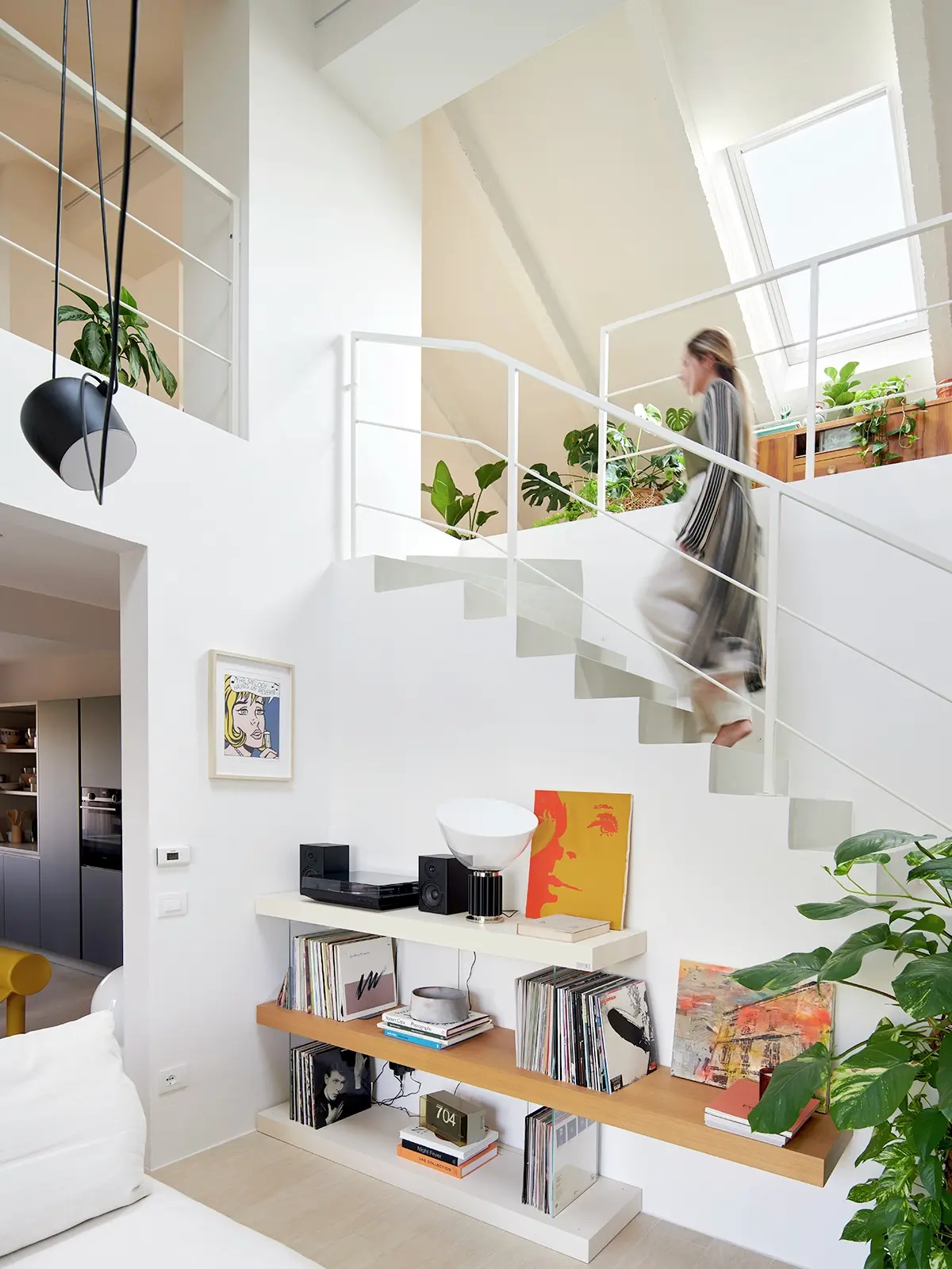 Le scale compatte come quelle retrattili o a chiocciola sono ideali per ambienti più piccoli, mentre spazi più ampi possono ospitare scale più comode con gradini sfalsati. Una buona opzione per salvare spazio è integrare la scala direttamente nell'arredamento, dandole una doppia funzione come libreria o mobile tv.