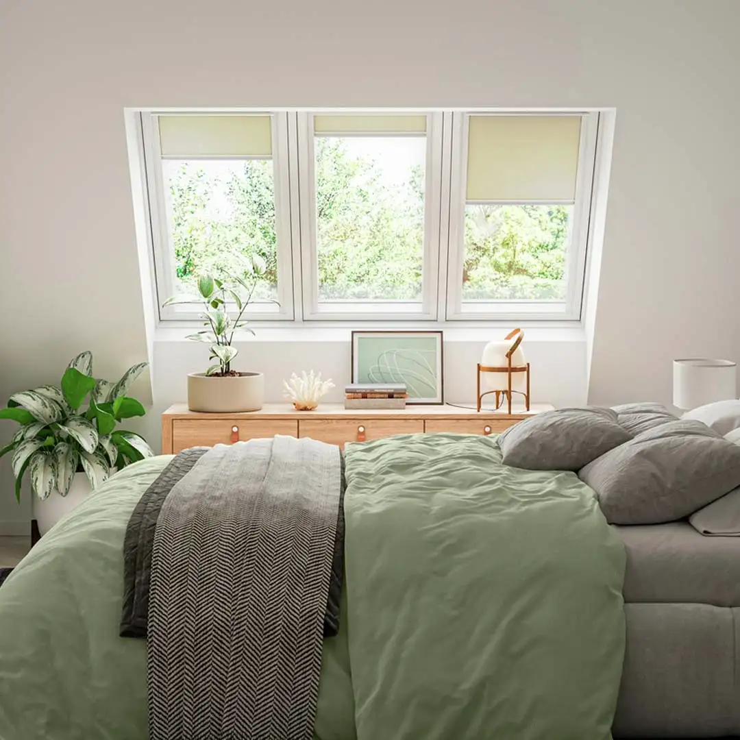 Le finestre per tetti in combinazione con le tende permettono di creare una luce dolce e omogenea, perfetta in una camera da letto Feng Shui.