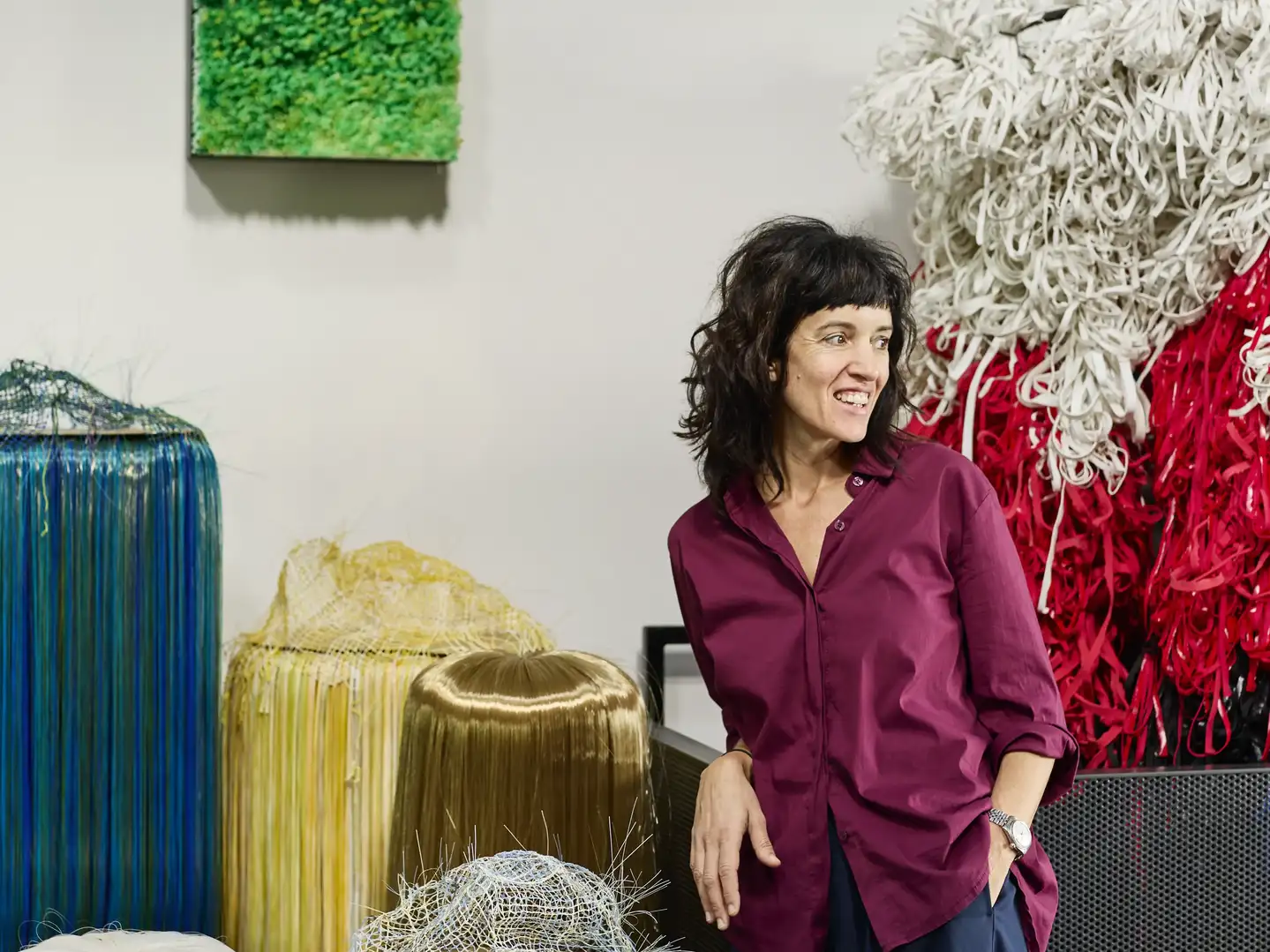 I materiali che Francesca Pasquali usa e trasforma per creare le sue opere comprendono oggetti e materiali industriali e plastici, di riuso e riciclo. Foto di Maja Karen Hansen.