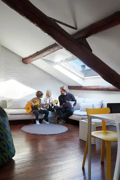 Inizialmente la scelta di Sergio è andata su schermature interne; in seguito ha deciso di far installare anche le schermature esterne VELUX, così da aumentare il benessere in ogni ambiente della casa. In cucina sono state inserite tapparelle soft, mentre nelle altre stanze tapparelle a lamelle rigide. Questi interventi si possono effettuare anche in un secondo momento, in una sola giornata di lavoro, senza necessità di opere murarie. Tutti i prodotti possono essere gestiti facilmente con uno smartphone, anche da remoto, grazie al sistema VELUX App Control.