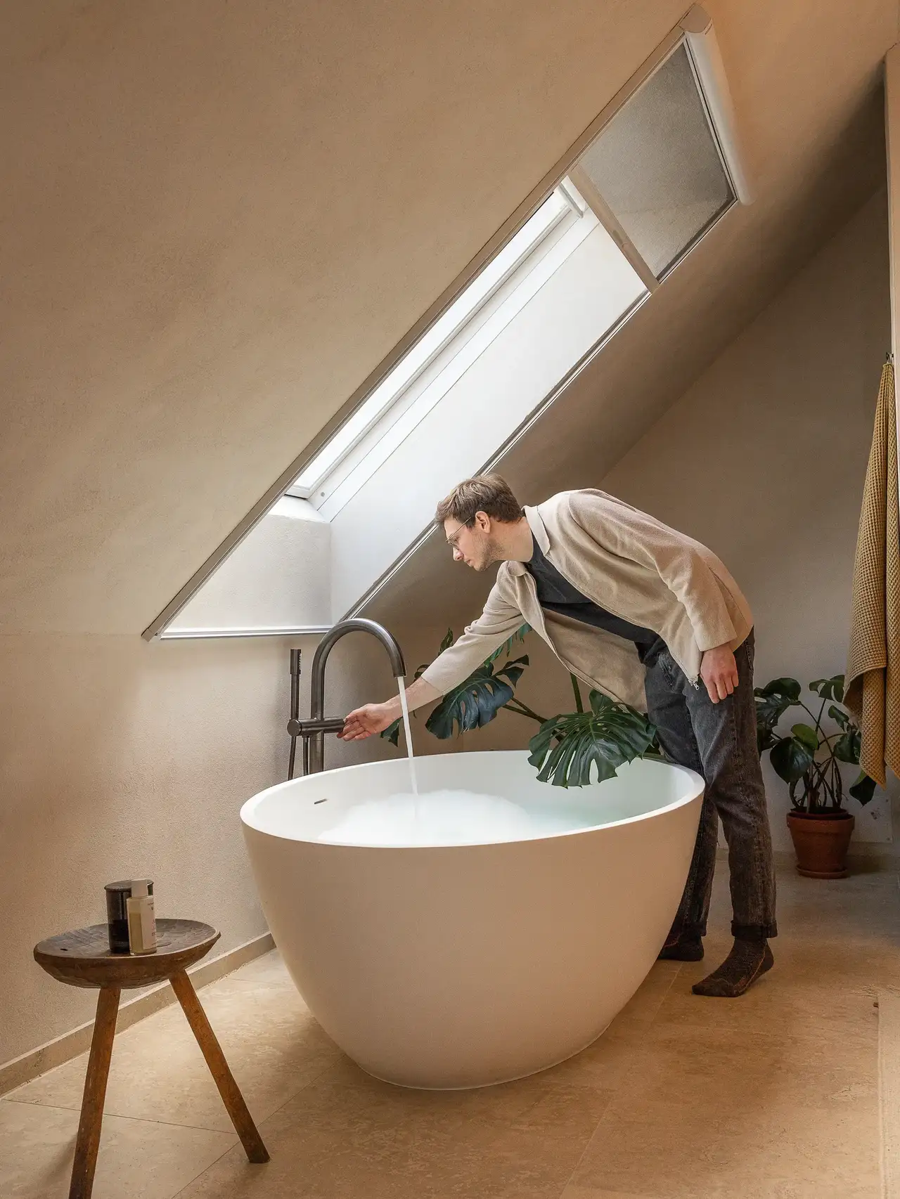 Nel caso di una mansarda, una vasca sotto la finestra ha un potenziale ancora maggiore, con l’accortezza di trasformare i lati critici di un ambiente simile - come lo spazio ristretto o il dispendio energetico - in punti di forza.